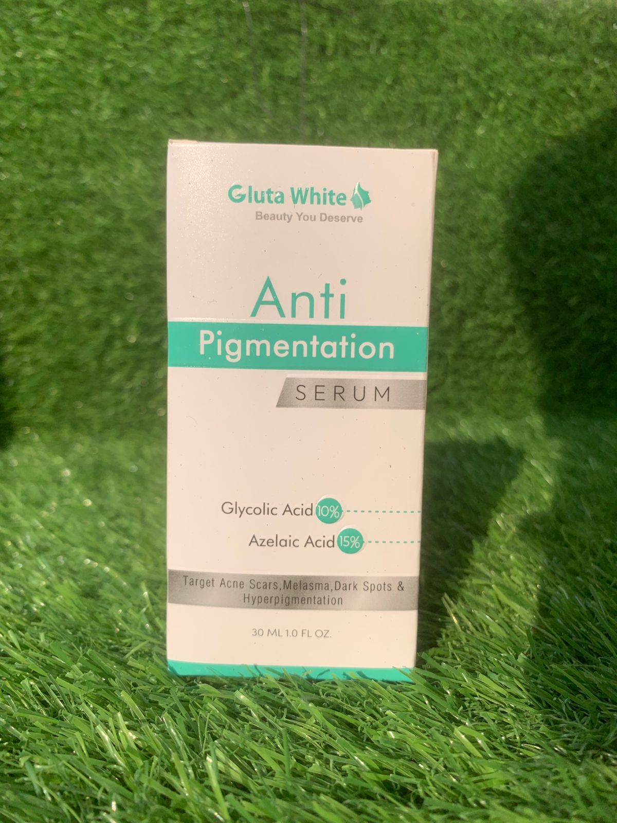 Apply Gluta White Anti Pigmentation Serum to clean skin in the morning and night.