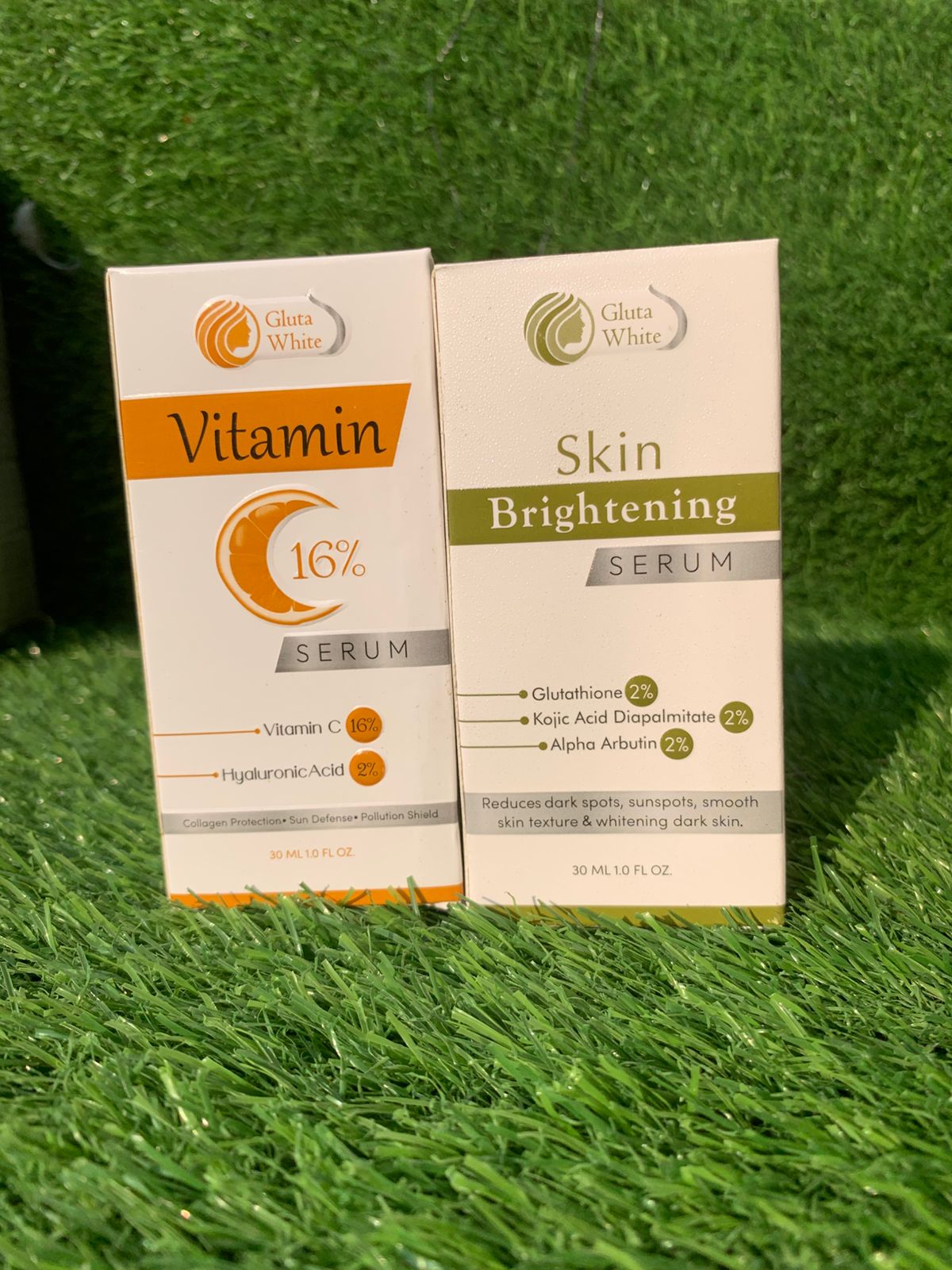 Gluta White Brightening Serum + Vitamin C Serum – Illuminate & Revitalize Your Skin